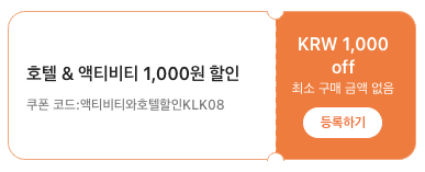 전 상품 10% 할인 + KB카드 결제 시 15%할인!호텔·액티비티 1,000원 즉시 할인 쿠폰도 있어요! 🙌