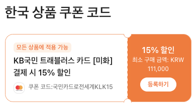 클룩에서 최대 15%,지금 받아보세요!